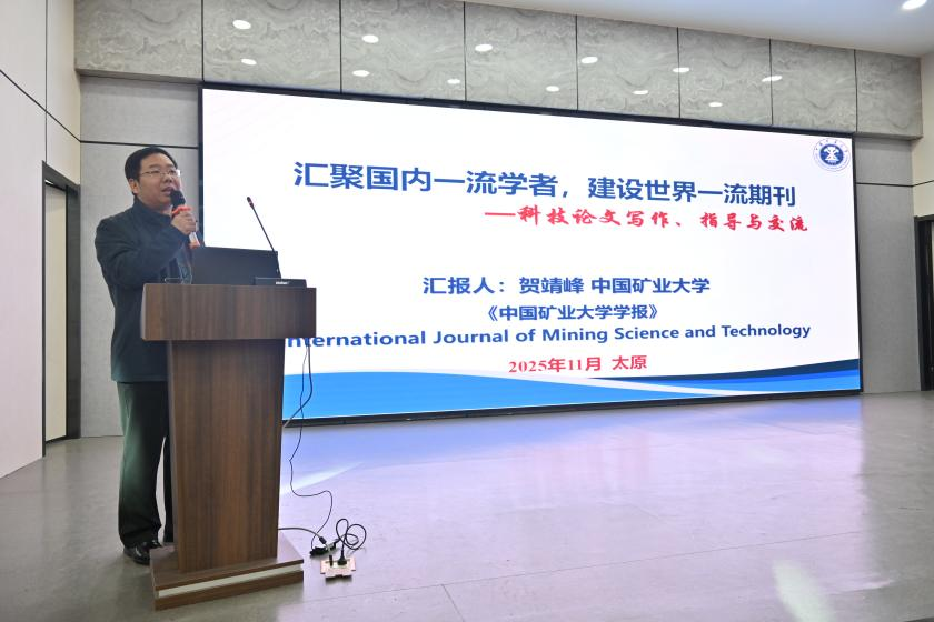 贺靖峰以《汇聚国内一流学者,建设世界一流通讯期刊——科技论文写作、指导与交流》为题,指出科研工作的核心应聚焦于服务社会进步与人类发展,强调国家对青年教师全面提升科研能力,服务教育强国、科技强国、人才强国战略的殷切期望。贺靖峰为师生们展示了刊物近年来我国矿业工程领域的优秀科研成果,彰显着我国矿业工程领域的飞速发展,最后围绕刊物的论文写作及发表规范,为师生们提供了专业且实用的指导。